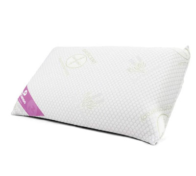 A diferencia de las anteriores, esta almohada posee una estructura de espuma viscoelástica combinada con carbón de bambú que además de ser adaptable y resistente, regula la humedad, los malos olores y se mantiene fresca. Viene con una funda con extracto de aloe vera extraíble con propiedades calmantes y antibacterianas.